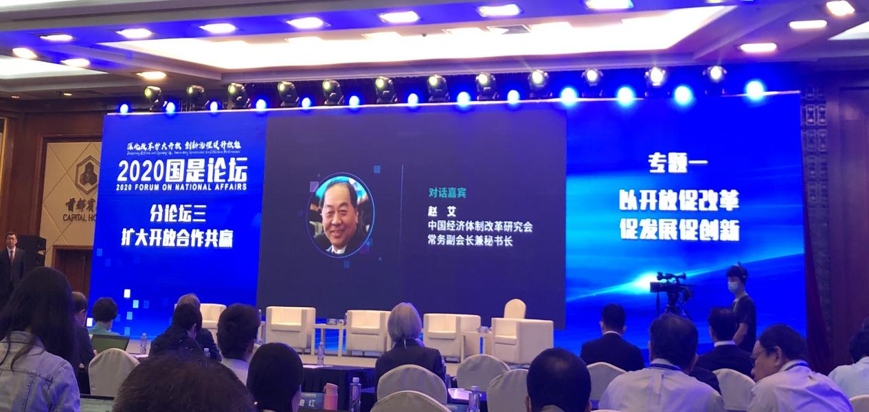 由國務(wù)院參事室、國家衛(wèi)生健康委員會(huì)、中國國際貿(mào)易促進(jìn)委員會(huì)、中國經(jīng)濟(jì)體制改革研究會(huì)聯(lián)合主辦,新華網(wǎng)承辦的 “2020國是論壇” 9月24日在北京開幕。本屆論壇以“深化改革擴(kuò)大開放、創(chuàng)新治理提升效能”為主題,邀請(qǐng)數(shù)十位重磅嘉賓與會(huì)交流研討。以下為中國經(jīng)濟(jì)體制改革研究會(huì)常務(wù)副會(huì)長(zhǎng)兼秘書長(zhǎng)趙艾同志在 “2020國是論壇” 上的演講。