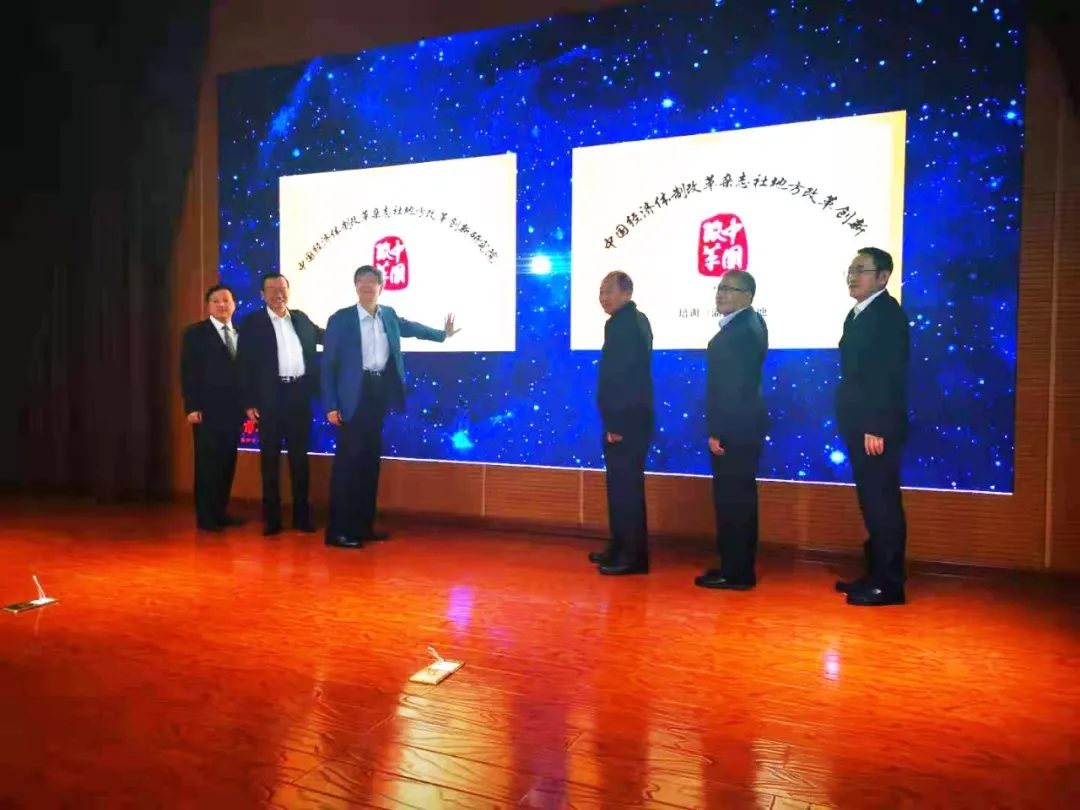 開班儀式上,與會(huì)領(lǐng)導(dǎo)專家共同為中國經(jīng)濟(jì)體制改革雜志社地方改革創(chuàng)新研究院淄博分院、地方改革創(chuàng)新培訓(xùn)(淄博)基地揭牌。