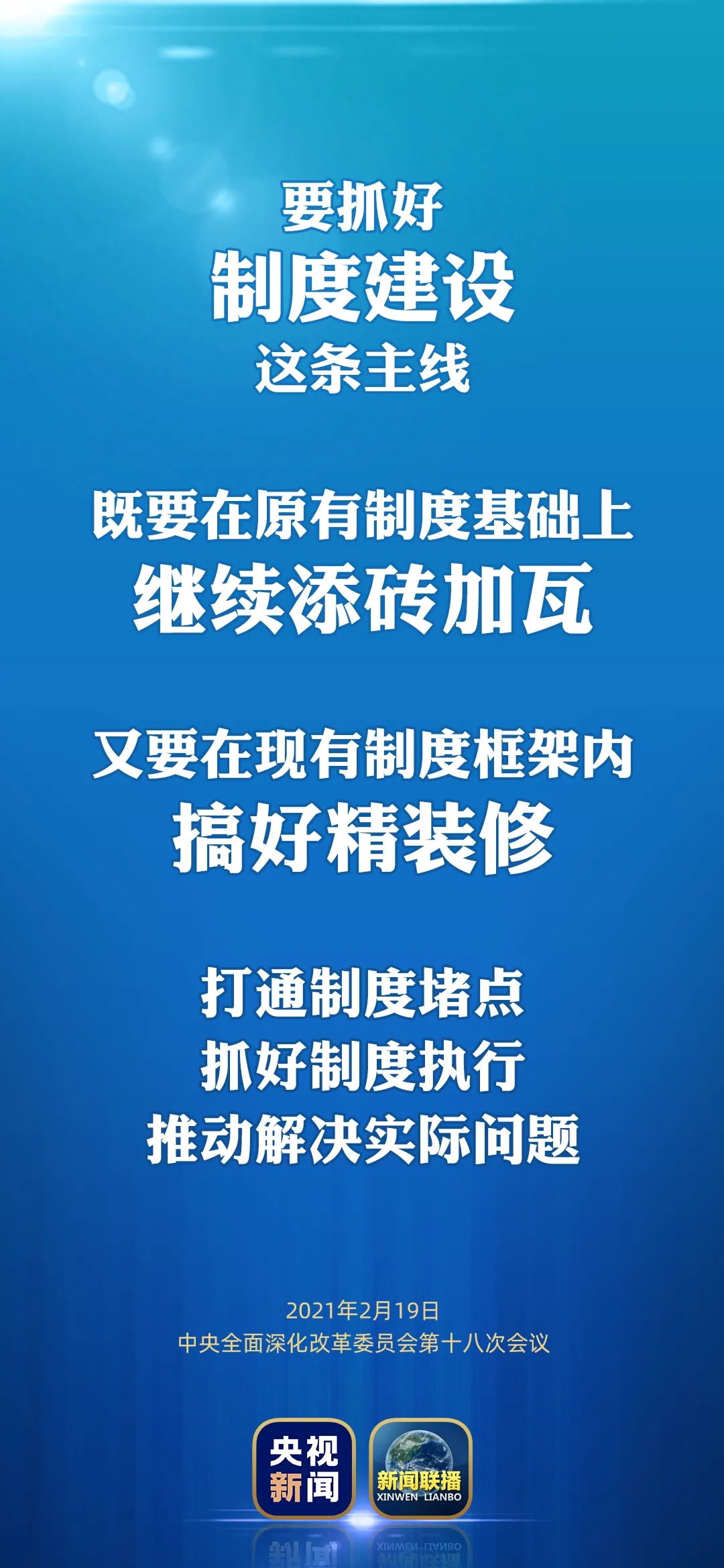 2月19日,中共中央總書記、國家主席、中央軍委主席、中央全面深化改革委員會主任習近平主持召開中央全面深化改革委員會第十八次會議并發(fā)表重要講話。他強調(diào),要完整、準確、全面貫徹新發(fā)展理念,更加精準地出臺改革方案,推動改革向更深層次挺進。來看梳理→