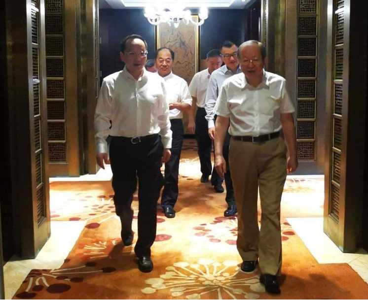 彭森會長(右)與湖北省委常委、省紀(jì)委書記、省監(jiān)察委員會主任侯淅珉(左)會面