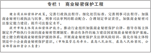 健全知識(shí)產(chǎn)權(quán)法律法規(guī)。開(kāi)展知識(shí)產(chǎn)權(quán)基礎(chǔ)性法律研究。統(tǒng)籌推進(jìn)專(zhuān)利法、商標(biāo)法、著作權(quán)法、反壟斷法、科學(xué)技術(shù)進(jìn)步法、電子商務(wù)法等相關(guān)法律法規(guī)的修改完善。加強(qiáng)地理標(biāo)志、商業(yè)秘密等領(lǐng)域立法,出臺(tái)商業(yè)秘密保護(hù)規(guī)定。完善集成電路布圖設(shè)計(jì)法規(guī)。推進(jìn)修訂植物新品種保護(hù)條例。制定中醫(yī)藥傳統(tǒng)知識(shí)保護(hù)條例。完善與國(guó)防建設(shè)相銜接的知識(shí)產(chǎn)權(quán)法律制度。全面建立并實(shí)施知識(shí)產(chǎn)權(quán)侵權(quán)懲罰性賠償制度,加大損害賠償力度。研究建立健全符合知識(shí)產(chǎn)權(quán)審判規(guī)律的特別程序法律制度。適應(yīng)科技進(jìn)步和經(jīng)濟(jì)社會(huì)發(fā)展需要,依法及時(shí)推動(dòng)知識(shí)產(chǎn)權(quán)法律法規(guī)立改廢釋。(中央宣傳部、最高人民法院、最高人民檢察院、科技部、工業(yè)和信息化部、司法部、農(nóng)業(yè)農(nóng)村部、商務(wù)部、國(guó)家衛(wèi)生健康委、市場(chǎng)監(jiān)管總局、國(guó)家國(guó)防科工局、國(guó)家林草局、國(guó)家中醫(yī)藥局、國(guó)家知識(shí)產(chǎn)權(quán)局、中央軍委裝備發(fā)展部等按職責(zé)分工負(fù)責(zé))