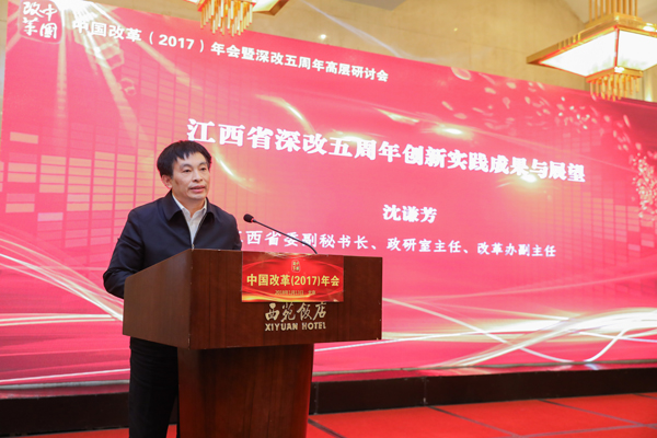 江西省委副秘書長、政研室主任、改革辦副主任沈謙芳指出,過去的五年,特別是近兩年來,江西省認真落實習近平總書記的重要指示要求,把全面深化改革作為重大的政治任務采取了一系列硬措施,推動各項改革、落實見效。江西省委省委改革辦自覺對標中央精神確保中央重大改革部署落實見效;聚焦重點領域關鍵環(huán)節(jié)取得一批有影響實踐成果;建立健全改革落實機制取得了一批有價值的制度成果。
