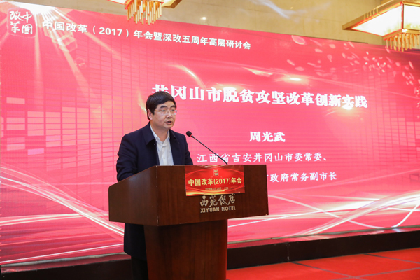 江西省吉安井岡山市委常委、常務副市長周光武介紹,井岡山在脫貧攻堅改革實踐中創(chuàng)新性地提出“三卡”建檔辦法,即,紅卡(特困戶)、藍卡(一般貧困戶)、黃卡(2014年已脫貧貧困戶);創(chuàng)造“12345”精準識別機制;建立了長效脫貧機制,即,創(chuàng)新干部幫扶機制,解決缺力量的問題,創(chuàng)新基金投入機制解決缺資金的問題;創(chuàng)新考核導向機制給足力的問題。