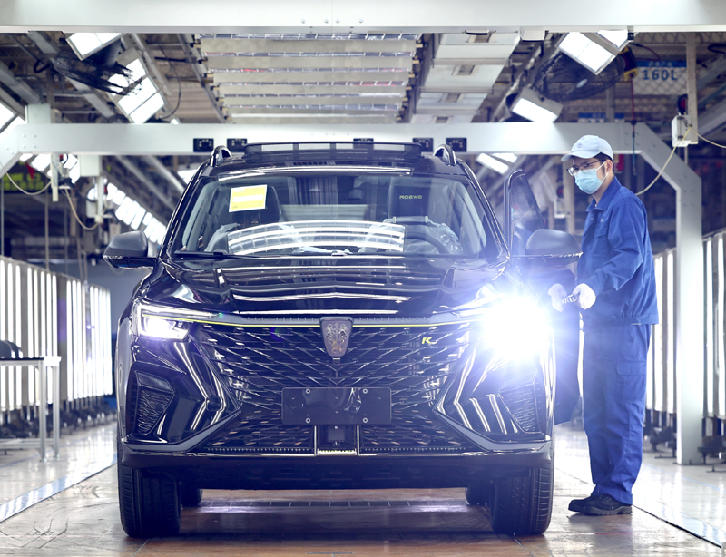 4月23日,上汽臨港乘用車工廠工人在總裝車間工作。新華社記者 陳建力 攝