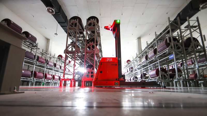 5月17日,AGV(自動導引運輸車)穿行在貴州首個5G全連接工廠的部件生產(chǎn)區(qū)內(nèi)。新華社記者 歐東衢 攝