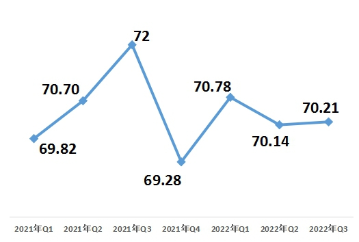 10月27日,中國經(jīng)濟(jì)體制改革研究會在京發(fā)布《2022年第三季度改革熱度第三方評估報告》。報告顯示,2022年第三季度改革熱度指數(shù)為70.21,比上一季度上升0.07,升幅0.1%。