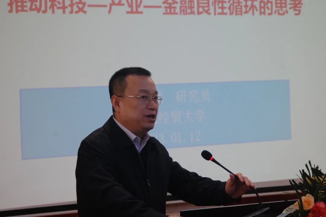 史玉強(qiáng)在書面致辭中說,此次會(huì)議雖然規(guī)模不大,時(shí)間也不長,但內(nèi)容很豐富,層層較高,很有特點(diǎn),是一個(gè)小而精、小而美的高質(zhì)量研討會(huì)。會(huì)議以貫徹黨的二十大精神,深化改革,推動(dòng)經(jīng)濟(jì)高質(zhì)量發(fā)展為主題,深入研究產(chǎn)業(yè)、科技、金融良性驅(qū)動(dòng),建設(shè)現(xiàn)代化產(chǎn)業(yè)體系,是當(dāng)前經(jīng)濟(jì)工作重點(diǎn)。會(huì)議組織形式新穎,兩個(gè)研究會(huì)、一所大學(xué)、一家銀行聚集研討,各有特點(diǎn),各有優(yōu)勢,一定會(huì)推出高水平成果。參會(huì)演講的專家都是業(yè)內(nèi)、省內(nèi)的頂級(jí)專家,是一次名副其實(shí)的精英聚會(huì)。會(huì)議堅(jiān)持虛實(shí)結(jié)合,設(shè)計(jì)了銀企對(duì)接環(huán)節(jié)。