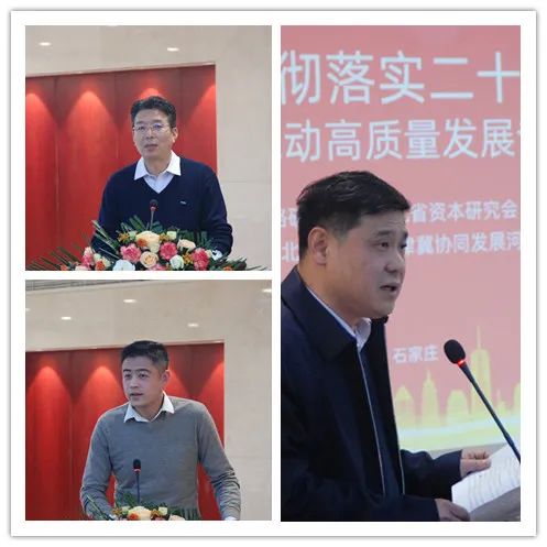中國商業(yè)經(jīng)濟(jì)學(xué)會(huì)副會(huì)長、河北省改革戰(zhàn)略研究會(huì)顧問、河北經(jīng)貿(mào)大學(xué)原校長紀(jì)良綱,河北省資本研究會(huì)會(huì)長、杰明投資董事長李月分別發(fā)表致辭,中國經(jīng)濟(jì)體制改革研究會(huì)副會(huì)長、河北省改革戰(zhàn)略研究會(huì)會(huì)長劉萬玲致辭并作主旨演講,河北資本研究會(huì)首席經(jīng)濟(jì)學(xué)家、河北省商務(wù)廳原巡視員史玉強(qiáng)從外地發(fā)來書面致辭。河北省改革戰(zhàn)略研究會(huì)副會(huì)長、河北經(jīng)貿(mào)大學(xué)副校長田學(xué)斌教授,邯鄲銀行黨委書記、董事長鄭志瑛教授,河北省宏觀經(jīng)濟(jì)研究院副院長高智研究員,河北經(jīng)貿(mào)大學(xué)金融學(xué)院院長王重潤教授分別作主題演講。河北省改革戰(zhàn)略研究會(huì)副會(huì)長、河北省社科院創(chuàng)新驅(qū)動(dòng)發(fā)展研究中心主任顏廷標(biāo)研究員主持研討會(huì)。會(huì)議期間還舉辦了新書發(fā)布、銀企對(duì)接活動(dòng)。參加會(huì)議的還有河北省改革戰(zhàn)略研究會(huì)特邀高級(jí)專家、河北冀廣傳媒集團(tuán)公司原董事長趙華茂,河北省改革戰(zhàn)略研究會(huì)副會(huì)長馮文斌 ,經(jīng)貿(mào)橋聯(lián)合創(chuàng)始人、省校企合作促進(jìn)會(huì)執(zhí)行會(huì)長張曉軍,河北省資本研究會(huì)副會(huì)長、河北省軍民兩用技術(shù)交易中心主任周天易,邯鄲銀行石家莊分行行長常志英,河北省資本研究會(huì)秘書長韓峰,河北省改革戰(zhàn)略研究會(huì)秘書長李文正等。省內(nèi)經(jīng)濟(jì)界知名學(xué)者、行業(yè)專家和企業(yè)代表等30余人出席會(huì)議。