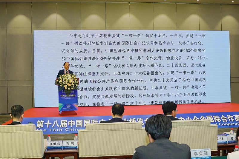 趙艾講到,今年是習(xí)近平主席提出共建“一帶一路”倡議十周年。十年來(lái),共建“一帶一路”倡議得到包括非洲在內(nèi)的國(guó)際社會(huì)廣泛認(rèn)同和熱情參與,取得了實(shí)打?qū)崱⒊恋榈榈某删?。中共二十大開(kāi)啟了推進(jìn)中國(guó)式現(xiàn)代化,全面建設(shè)社會(huì)主義現(xiàn)代化國(guó)家的新征程。中非共建“一帶一路”也進(jìn)入了深化務(wù)實(shí)合作,實(shí)現(xiàn)共贏發(fā)展的新階段。這種新形勢(shì)為中非中小企業(yè)拓展國(guó)際化互利合作空間,在推進(jìn)“一帶一路”建設(shè)中進(jìn)一步發(fā)揮重要作用提供了新機(jī)遇。