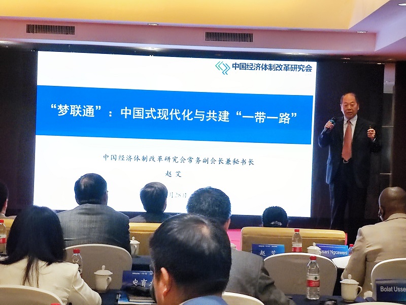 2023年10月28日,我會(huì)常務(wù)副會(huì)長(zhǎng)兼秘書長(zhǎng)趙艾應(yīng)邀出席在北京召開的“高質(zhì)量共建‘一帶一路’:成就與展望”國(guó)際學(xué)術(shù)研討會(huì),并作題為《“夢(mèng)聯(lián)通”:中國(guó)式現(xiàn)代化與共建“一帶一路”》的主旨演講。