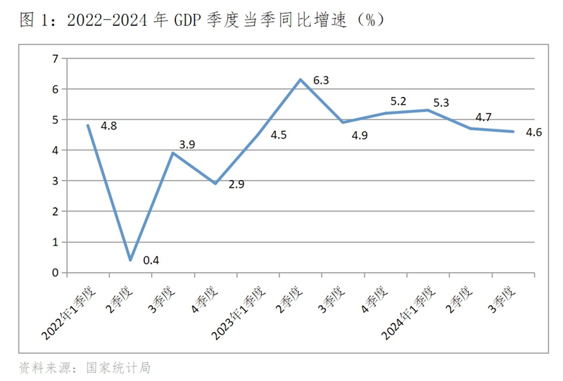 (三)增速上年同期基數(shù)較高。上年四季度GDP增速是自2022年以來(lái)季度GDP第二快的增速,同比增長(zhǎng)5.2%,第一快的增速是上年二季度的增速,增長(zhǎng)6.3%。由于上年二季度增速基數(shù)較高,今年二季度GDP增速為4.7%,回落了1.6個(gè)百分點(diǎn)。而如果今年四季度GDP增長(zhǎng)5.5%,意味著GDP增速比上年四季度回升了0.3個(gè)百分點(diǎn)。從這一對(duì)比分析中就可看出,要實(shí)現(xiàn)今年四季度GDP增長(zhǎng)5.5%還面臨著基數(shù)較高因素的影響。