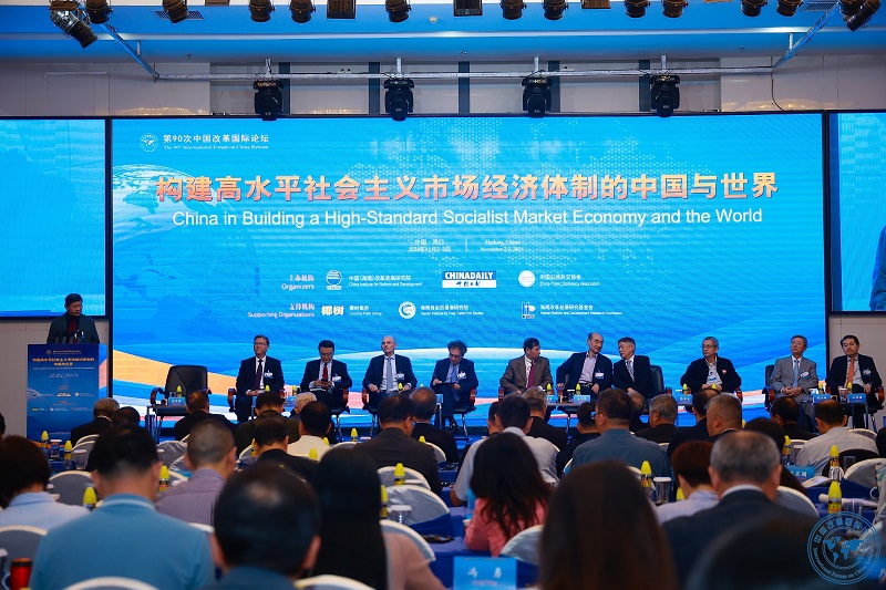 為學(xué)習(xí)貫徹黨的二十屆三中全會(huì)精神,以進(jìn)一步全面深化改革推進(jìn)中國(guó)式現(xiàn)代化,11月2日,中國(guó)(海南)改革發(fā)展研究院、中國(guó)日?qǐng)?bào)社、中國(guó)公共外交協(xié)會(huì)聯(lián)合主辦的“構(gòu)建高水平社會(huì)主義市場(chǎng)經(jīng)濟(jì)體制的中國(guó)與世界——第90次中國(guó)改革國(guó)際論壇”在海南??谡介_幕。來自32個(gè)省、市、自治區(qū)、特別行政區(qū)的政府、高校、科研機(jī)構(gòu)、企業(yè)和媒體代表以及24個(gè)國(guó)家和國(guó)際組織、使領(lǐng)館代表參加本次國(guó)際論壇。海南省委書記馮飛在開幕式后會(huì)見世界自由區(qū)組織主席穆罕默德·阿扎魯尼,海南省人民政府省長(zhǎng)劉小明出席開幕式并致辭。
