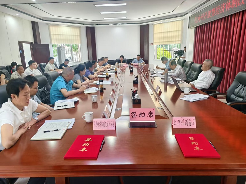 在紅河州調(diào)研期間,趙艾以“擴(kuò)大沿邊開放是推進(jìn)中國式現(xiàn)代化的重要任務(wù)”為題,為州委書記趙瑞君主持的州委中心組集中學(xué)習(xí)做專題報(bào)告。州委副書記、州長羅萍等州委理論學(xué)習(xí)中心組成員出席,州委、州政府有關(guān)領(lǐng)導(dǎo)、相關(guān)部門負(fù)責(zé)同志列席,全州13縣(市)主要負(fù)責(zé)同志以視頻形式聽講。副州長許高紅主持召開“紅河州開放型經(jīng)濟(jì)體制改革專項(xiàng)小組”專題會,州委政研室、州商務(wù)局、開放辦、交通運(yùn)輸局、農(nóng)業(yè)農(nóng)村局、外辦、蒙自海關(guān)、稅務(wù)局、金融監(jiān)管局、人民銀行紅河支行等單位負(fù)責(zé)同志參加并發(fā)言,向調(diào)研組介紹了有關(guān)情況。紅河州商務(wù)局出面與我會“一帶一路”建設(shè)專委會簽訂了合作框架協(xié)議。調(diào)研組還到云南錫業(yè)化工材料有限公司、云南美科新能源發(fā)展有限公司、蒙自經(jīng)開區(qū)管委會、元陽縣鄉(xiāng)村振興產(chǎn)業(yè)園、云南自貿(mào)試驗(yàn)區(qū)紅河片區(qū)(河口邊合區(qū))、河口口岸等實(shí)地調(diào)研。