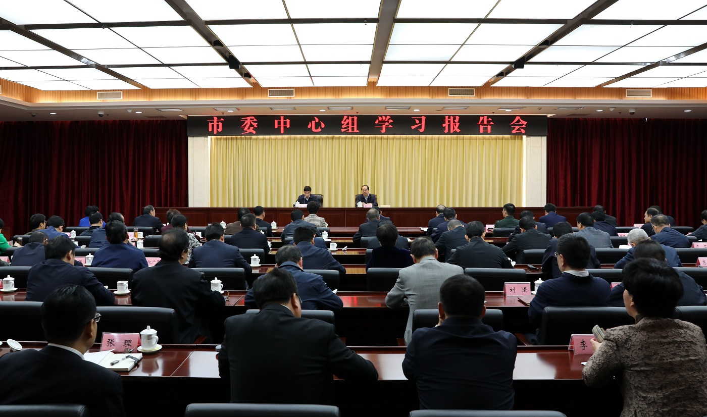 受中共陜西省委常委、西安市委書記王浩同志委托,市委常委、市委宣傳部部長張琳主持報告會,市人大常委會主任胡潤澤,市委常委史曉紅、趙敏、盧力群、胡澤、馬希良等同志出席,各局委辦主要負責同志300多人參加報告會。
