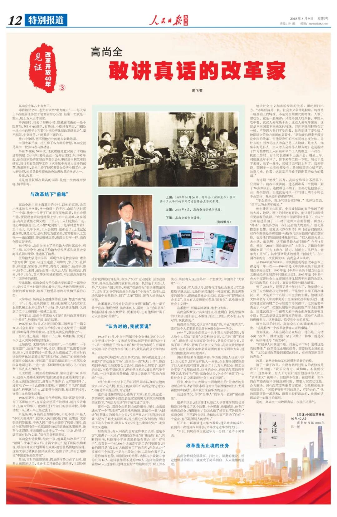 中國改革開放廣泛匯聚了各方面的智慧,高尚全就是其中一位參與者與推動者。